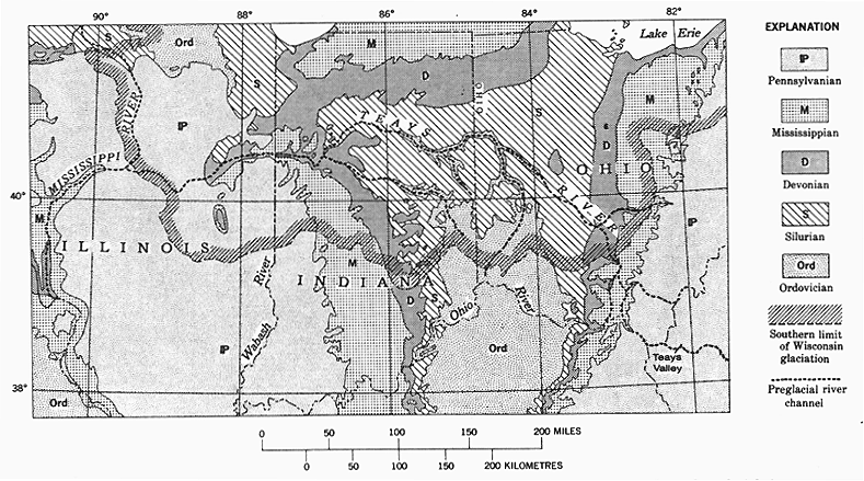 FIGURE 12.--Generalized geologic map of eastern Middle Western States,