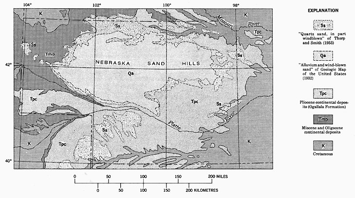 dunes and drifted sand (Sand Hills Formation) as