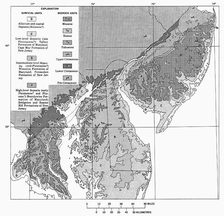 FIGURE 15.--Geologic map of the Atlantic Coastal Plain in Maryland,